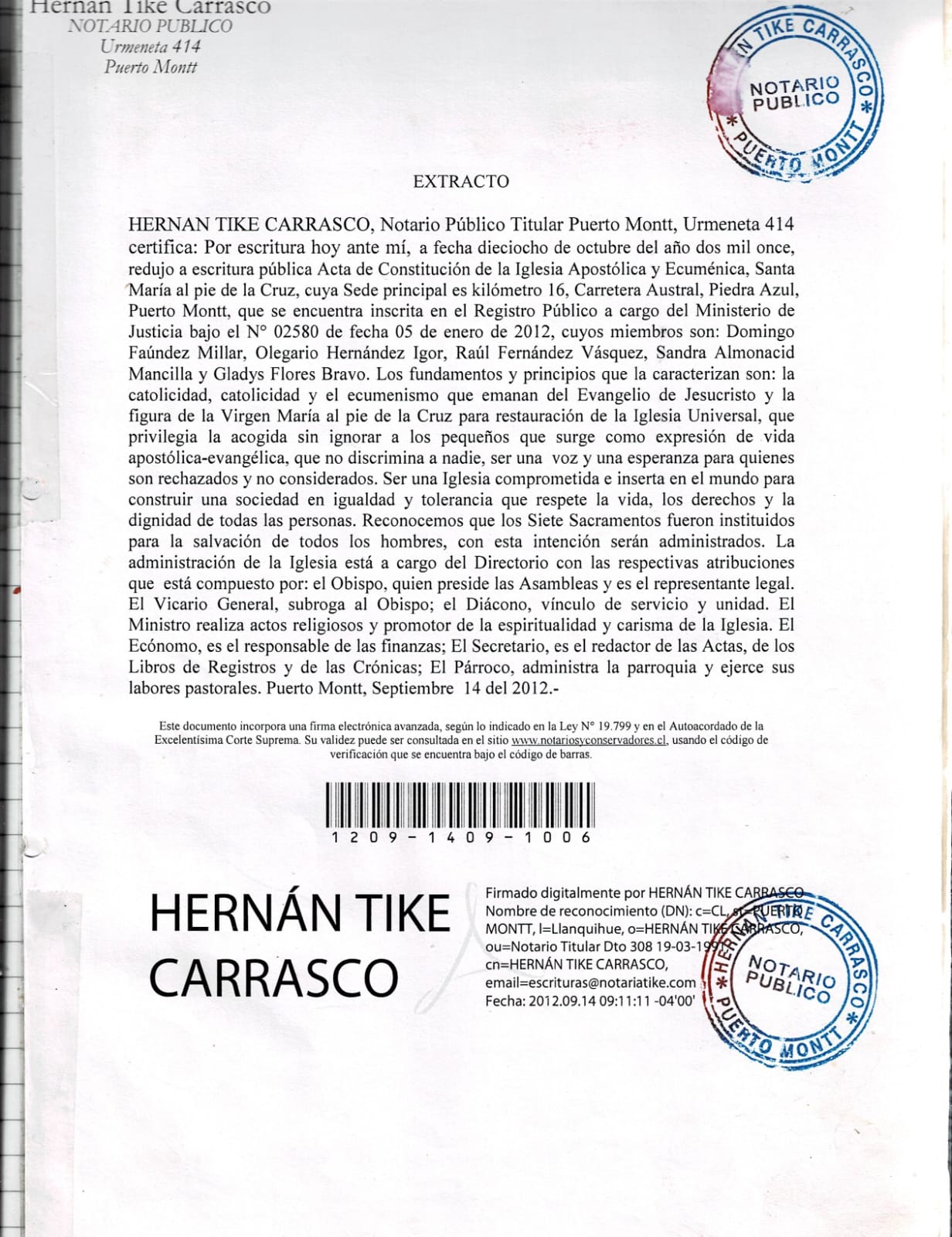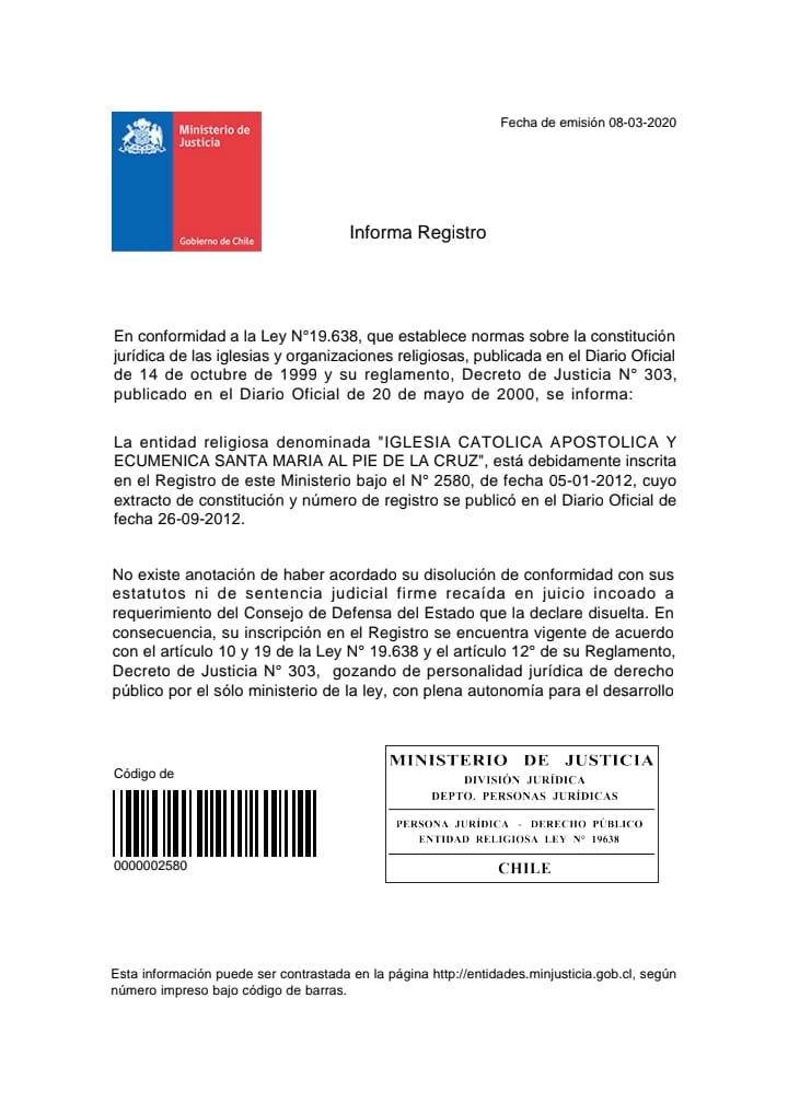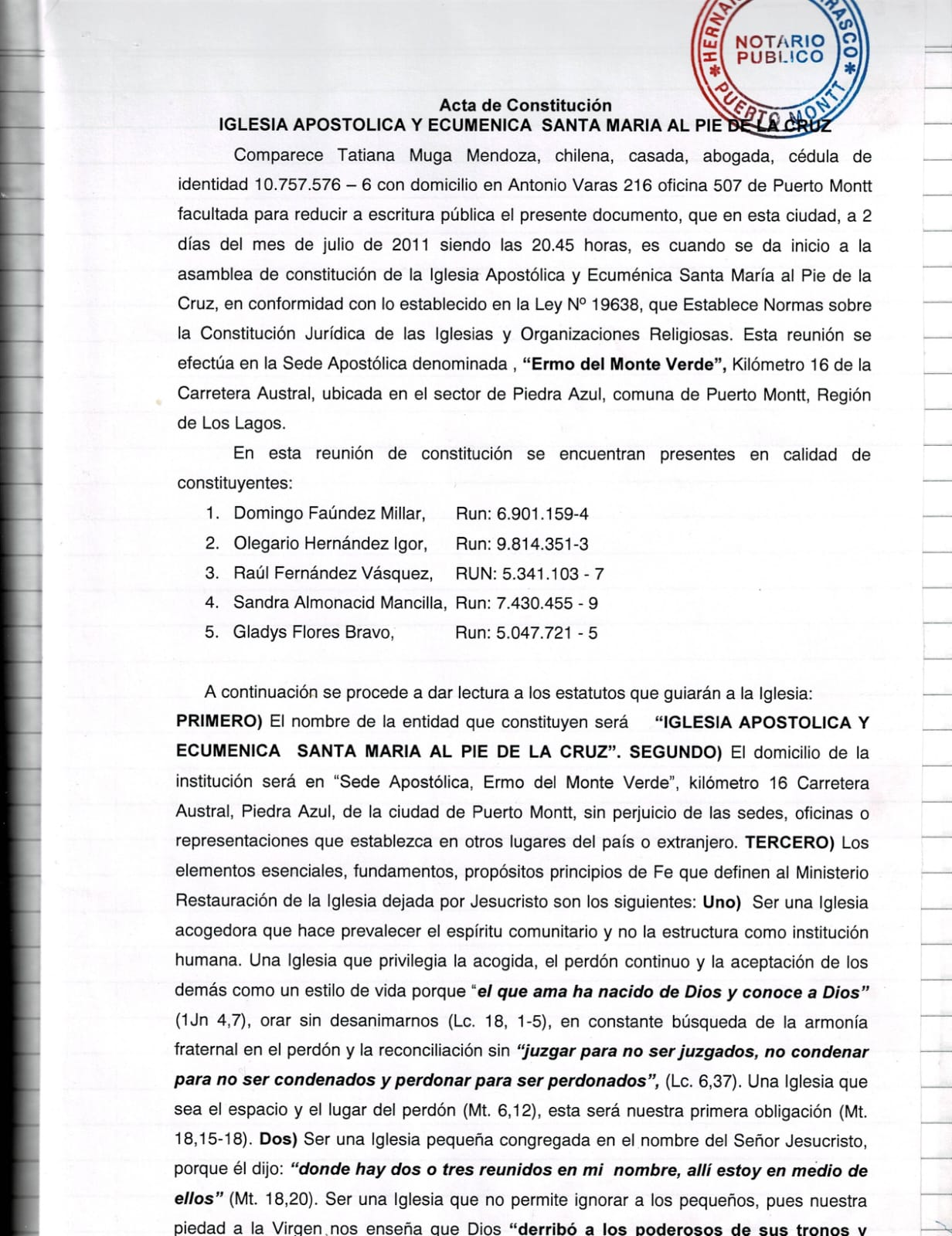 CONSTITUCIÓN JURÍDICA DE LA ICAE. 05 DE ENERO DE 2012, EMANADA POR EL MINISTERIO DE JUSTICIA DE CHILE.